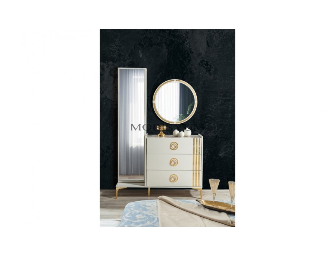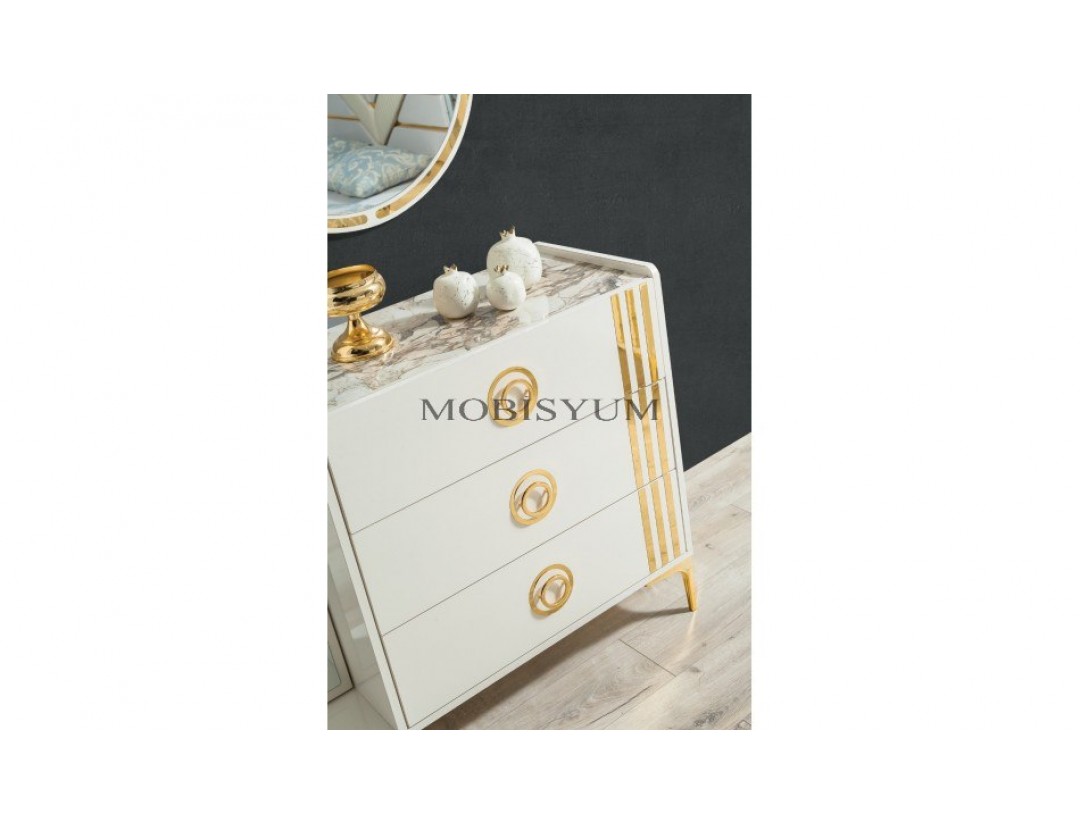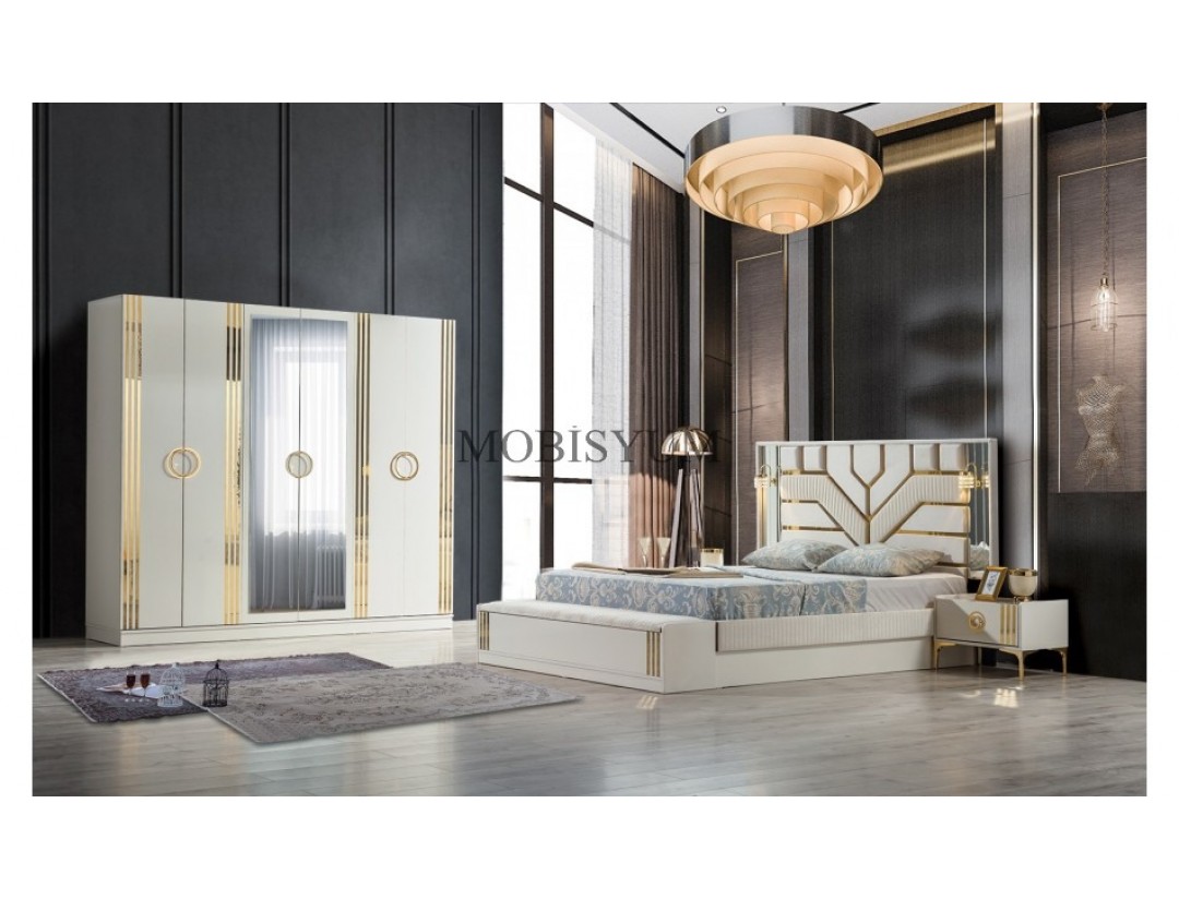 - Takım İçeriği: Bir gardırop, bir şifonyer, bir karyola başlık kendinden baza ve iki komodin den oluşmaktadır
