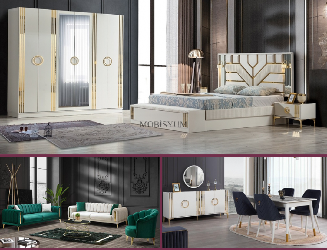 Yatak Odası | 1 Adet Gardırop, 1 Adet Karyola ve Başlığı, 2 Adet Komodin, 1 Adet Şifonyer ve Aynasın’dan oluşmaktadır. |