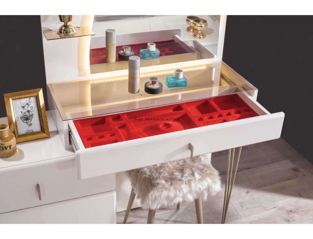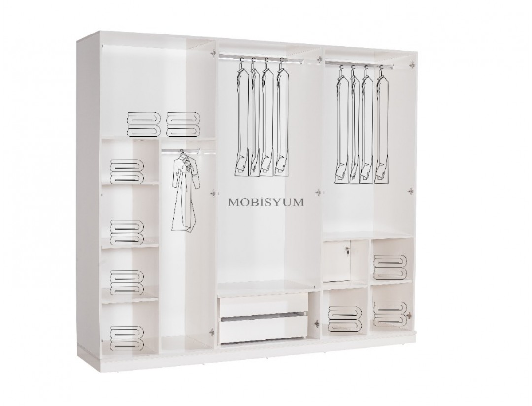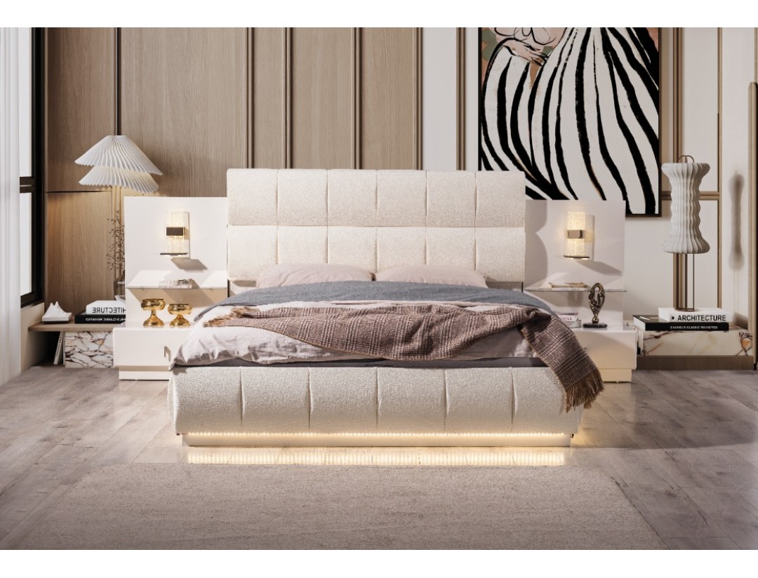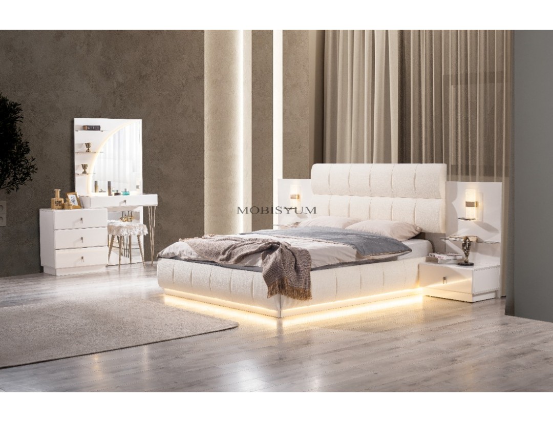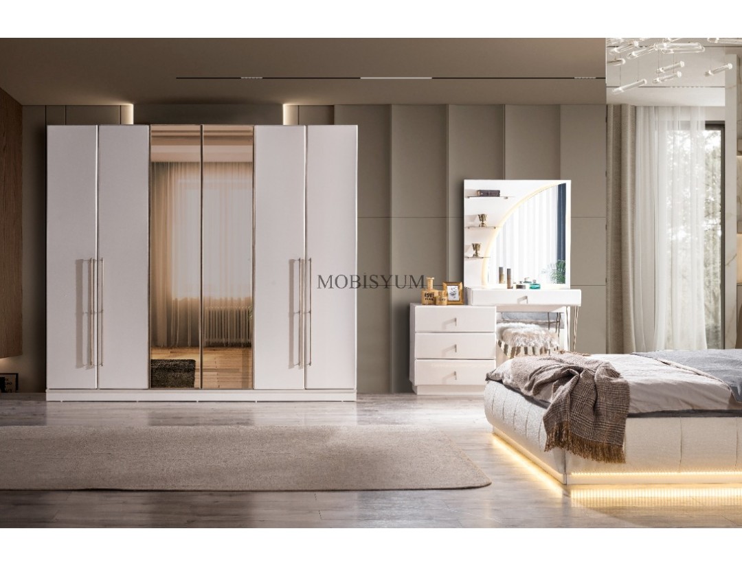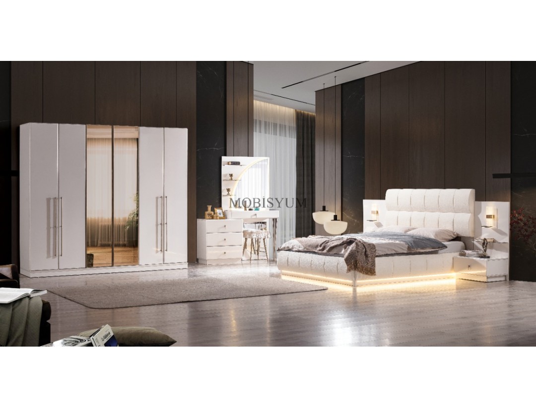 - Takım İçeriği: Bir gardırop, bir şifonyer, bir karyola başlık kendinden baza ve iki komodin den oluşmaktadır