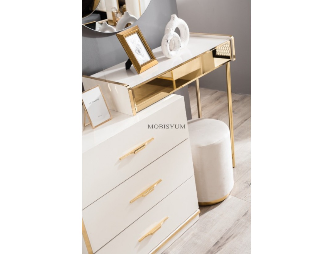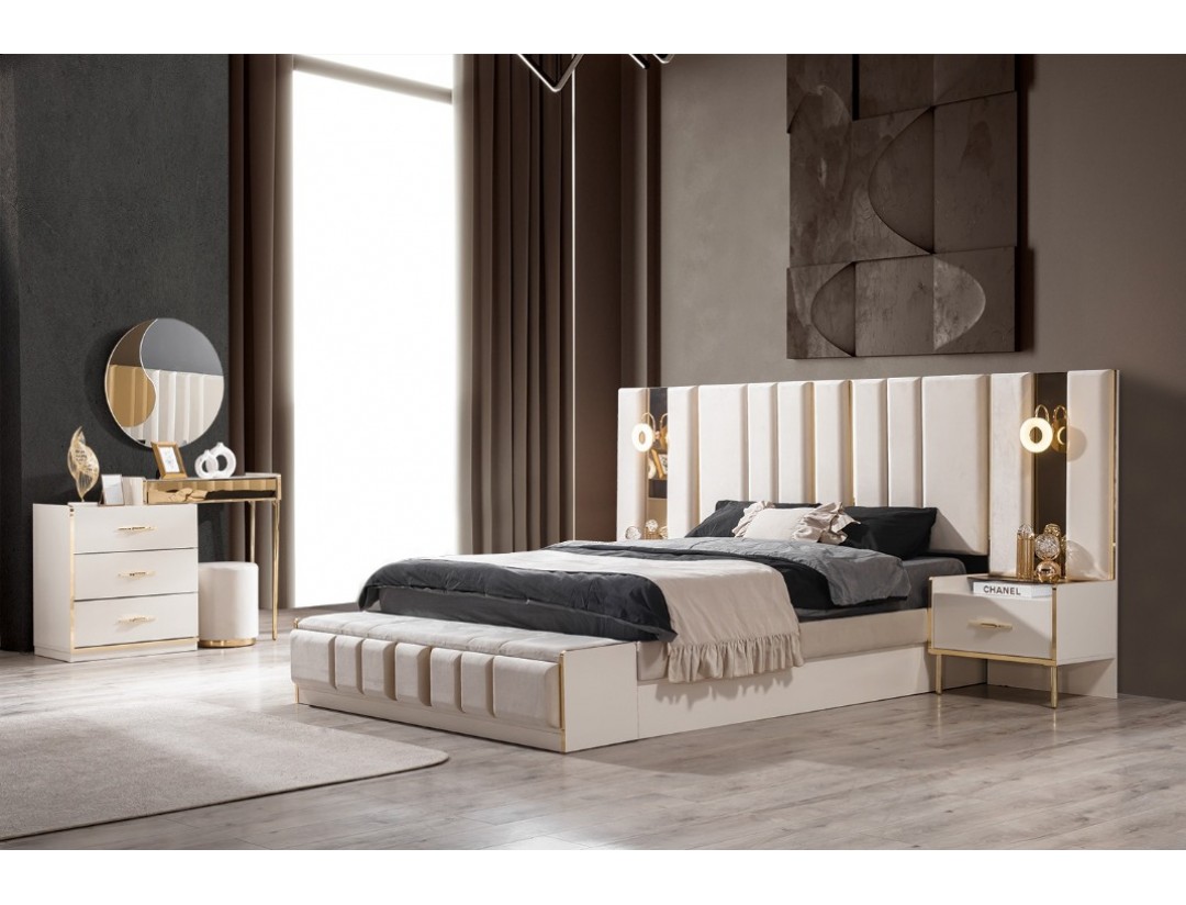 - Takım İçeriği: Bir gardırop, bir şifonyer, bir karyola başlık kendinden baza ve iki komodin den oluşmaktadır