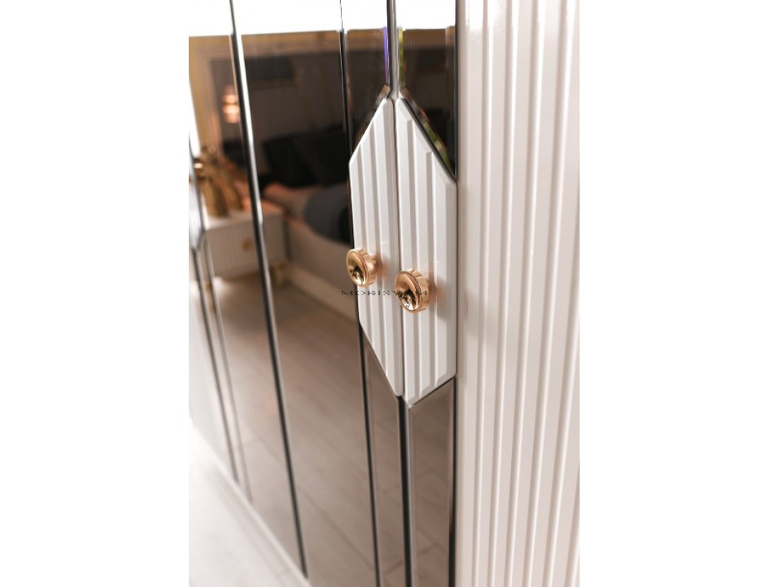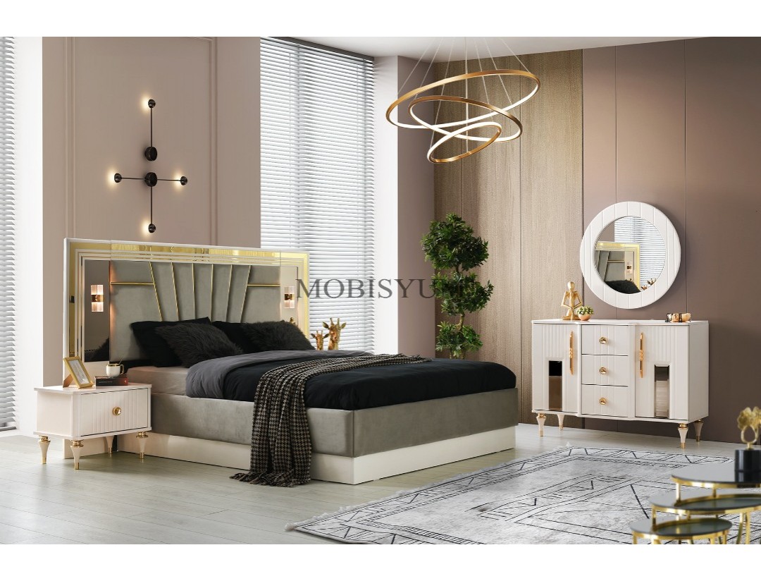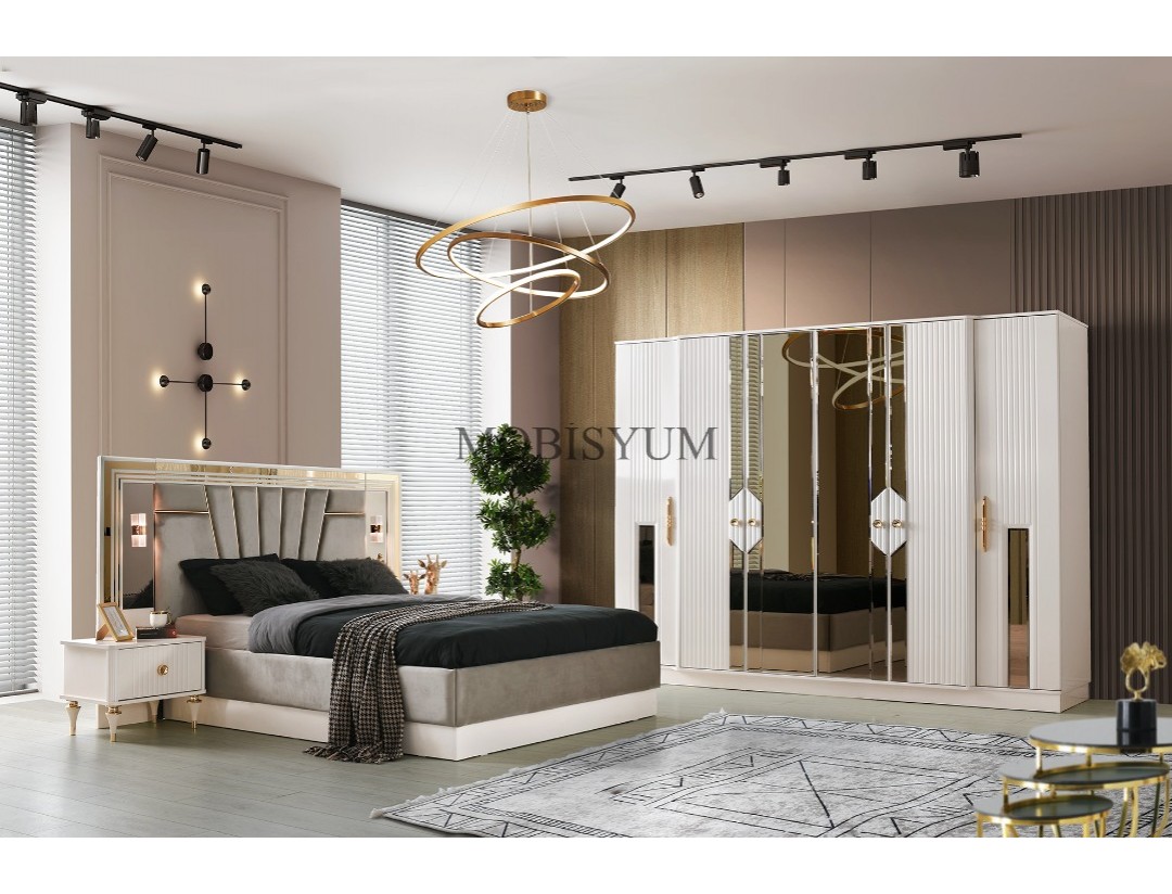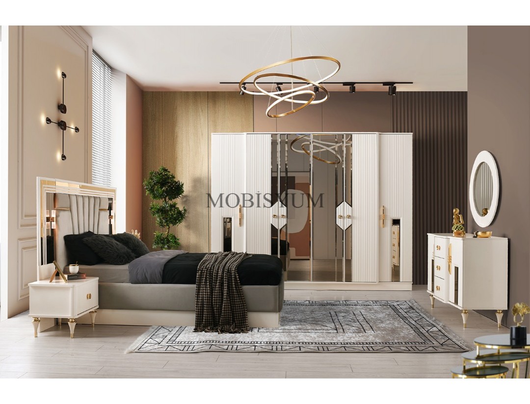 TAKIM İÇERİĞİ | Bir gardırop, bir şifonyer, bir karyola başlık kendinden baza ve iki komodin den oluşmaktadır |