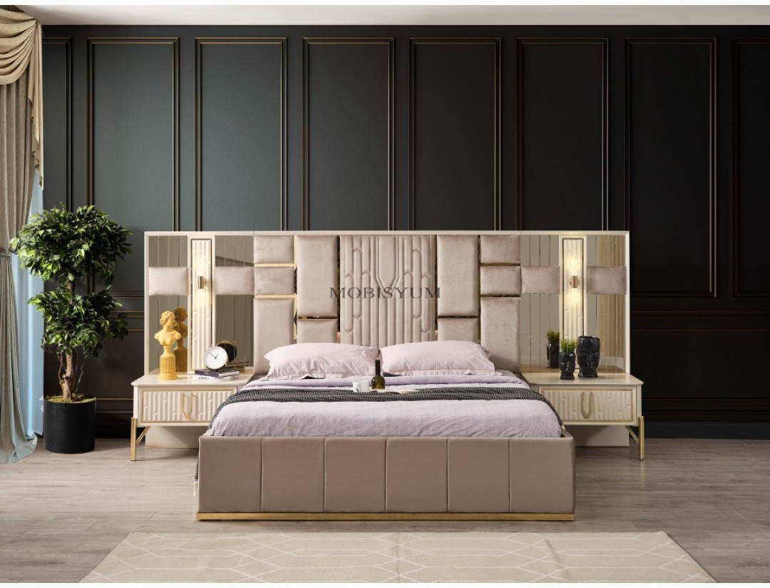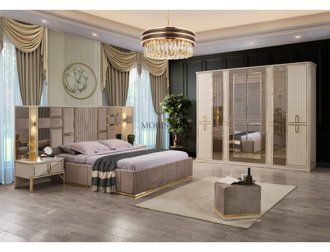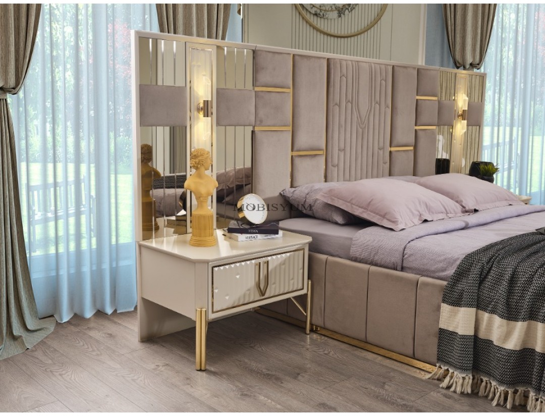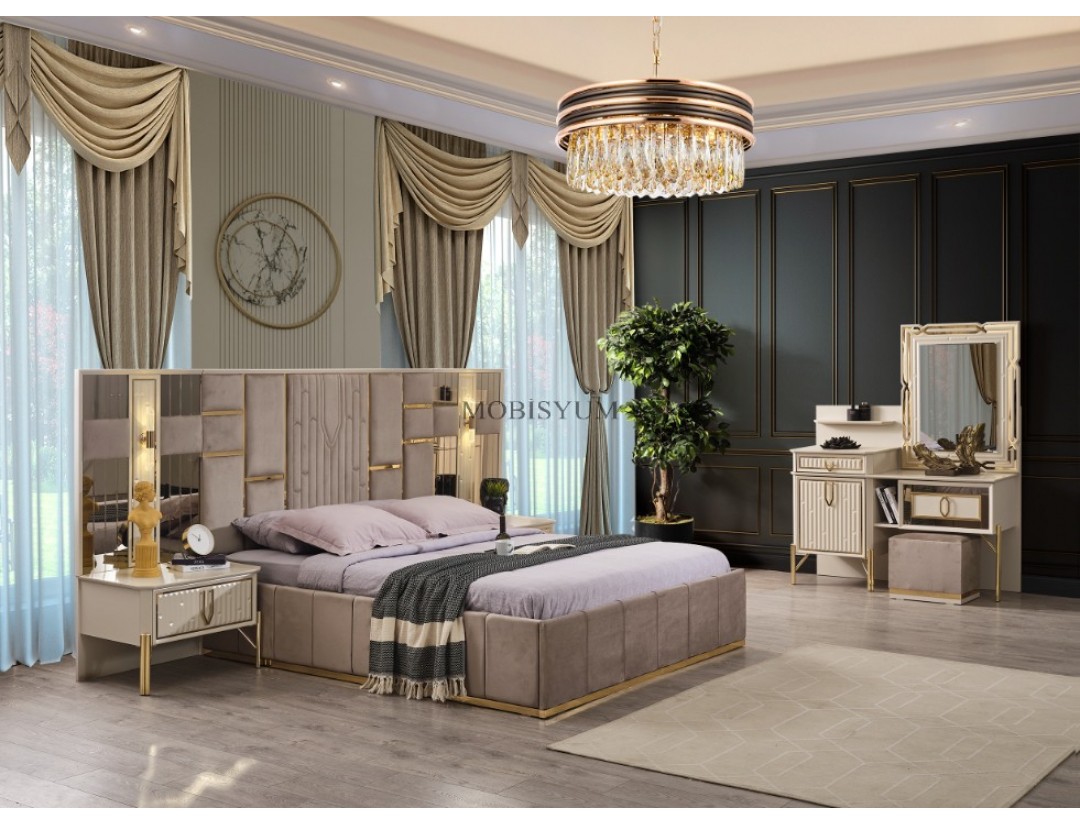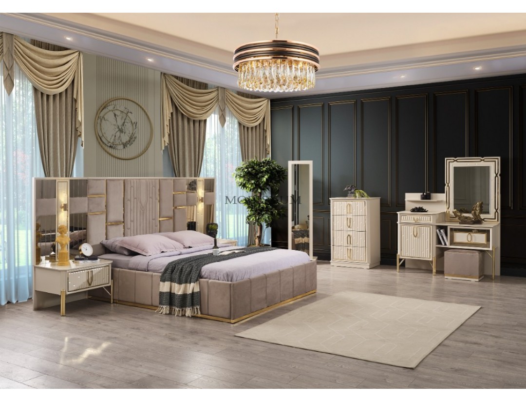 TAKIM İÇERİĞİ | Bir gardırop, bir şifonyer, bir karyola başlık kendinden baza ve iki komodin den oluşmaktadır |