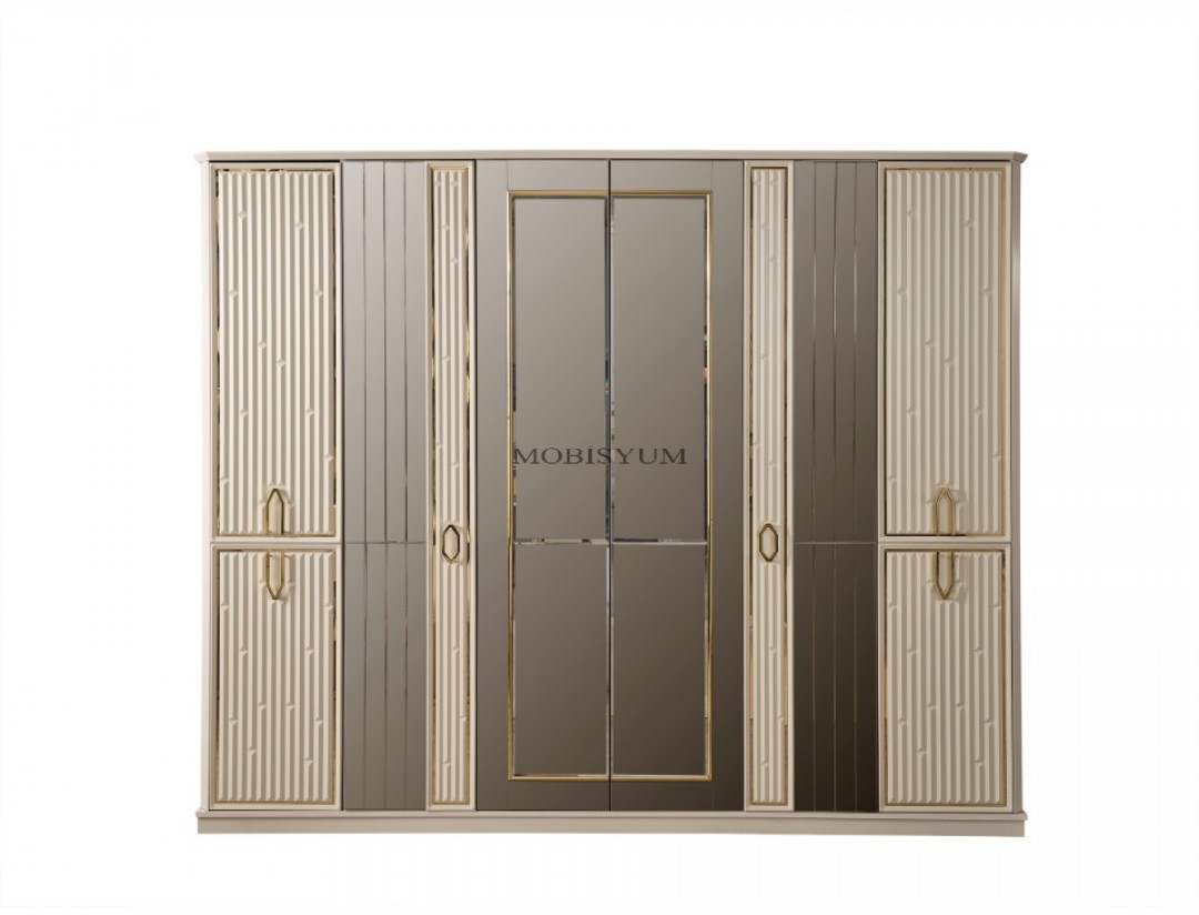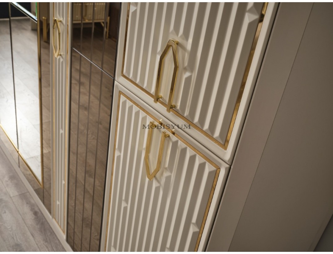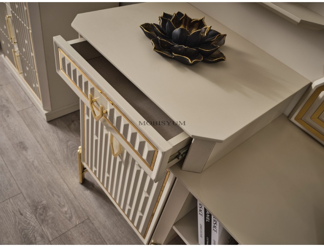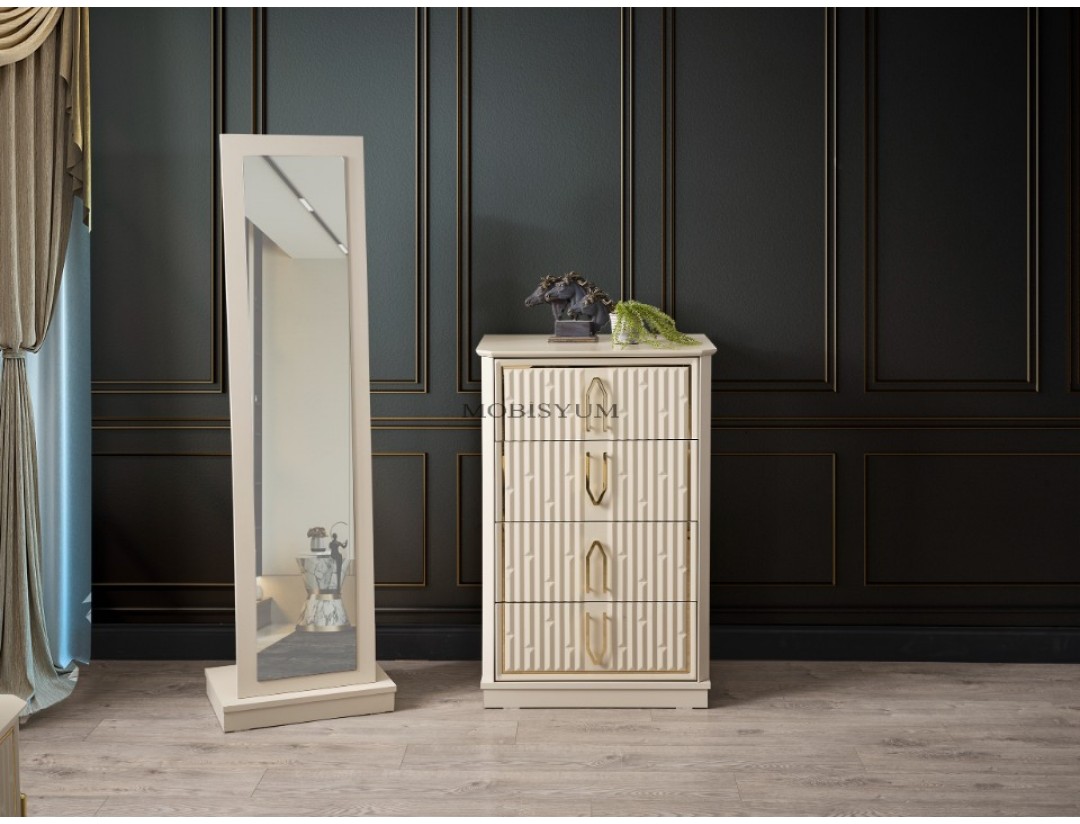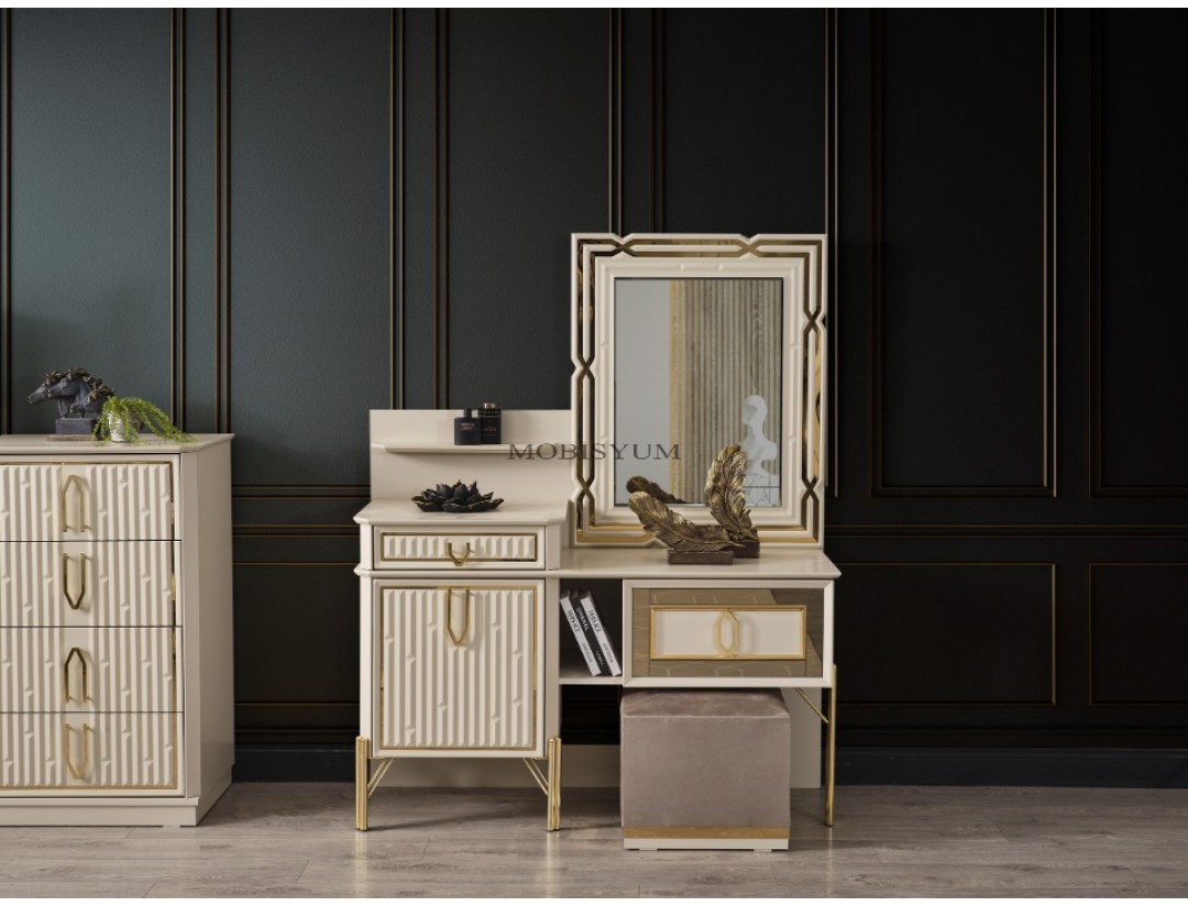 TAKIM İÇERİĞİ | Bir gardırop, bir şifonyer, bir karyola başlık kendinden baza ve iki komodin den oluşmaktadır |