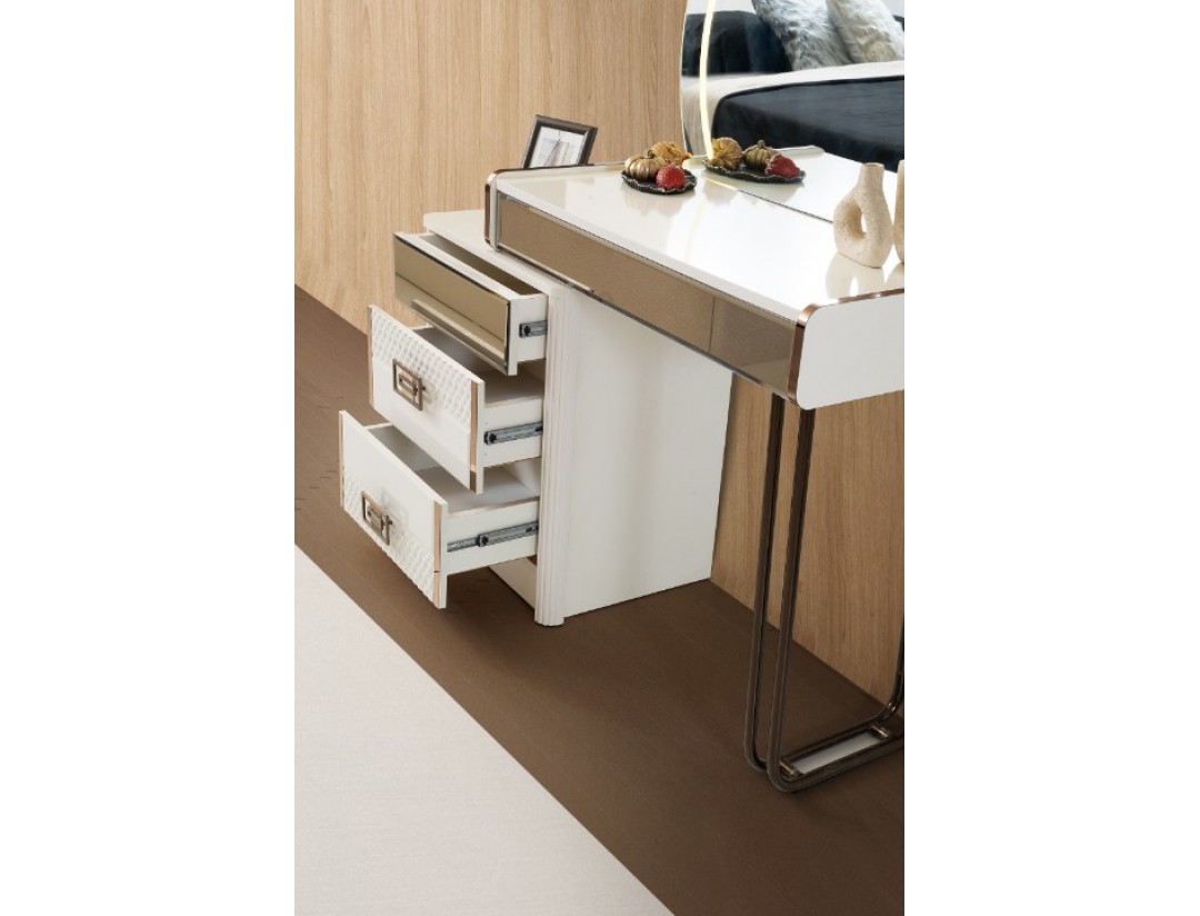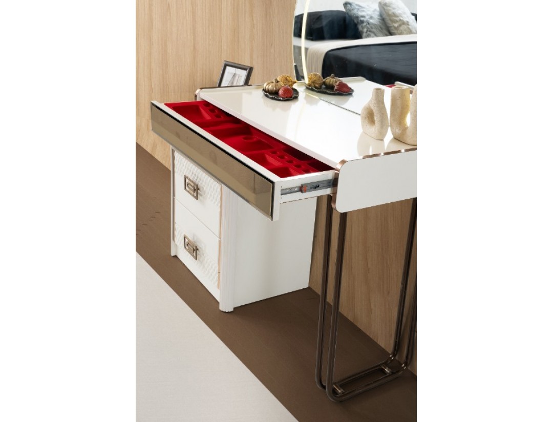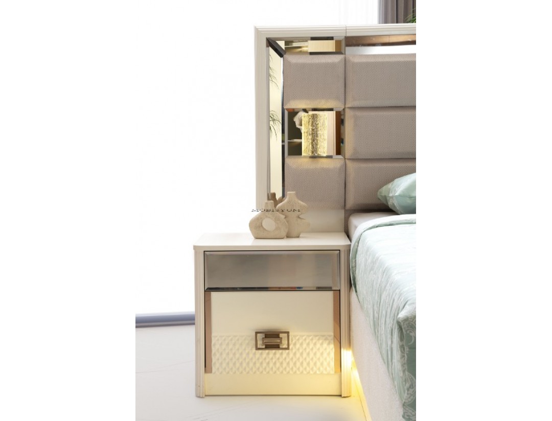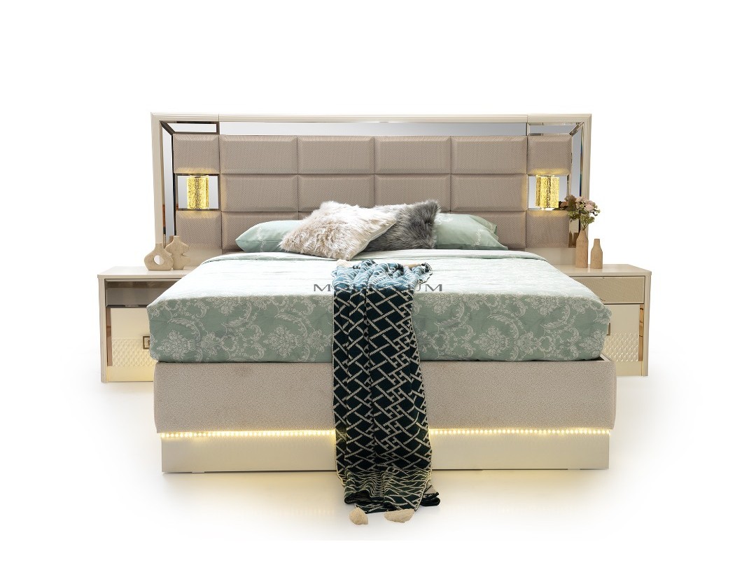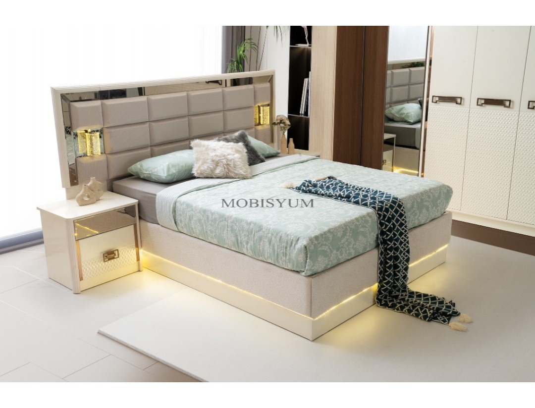 TAKIM İÇERİĞİ | Bir gardırop, bir şifonyer, bir karyola başlık kendinden baza ve iki komodin den oluşmaktadır |