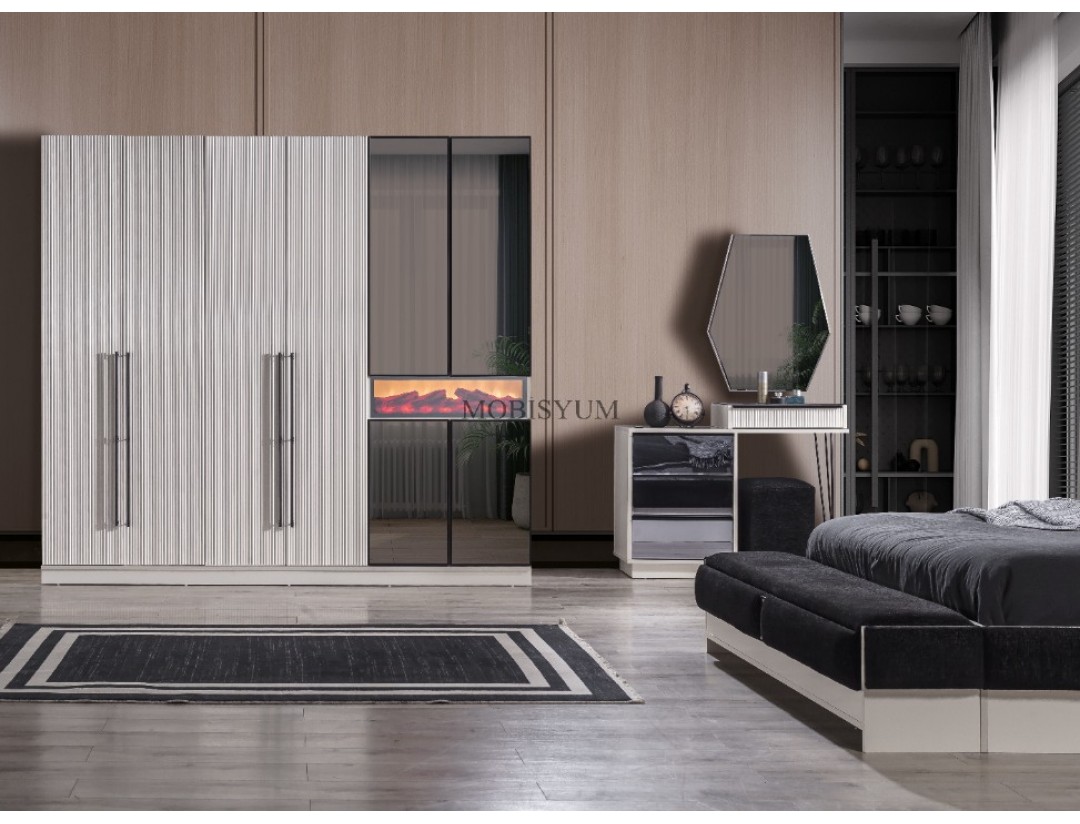 - Takım İçeriği: Bir gardırop, bir şifonyer, bir karyola başlık kendinden baza ve iki komodin den oluşmaktadır