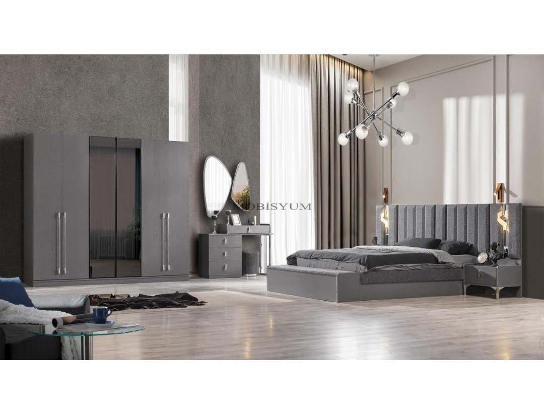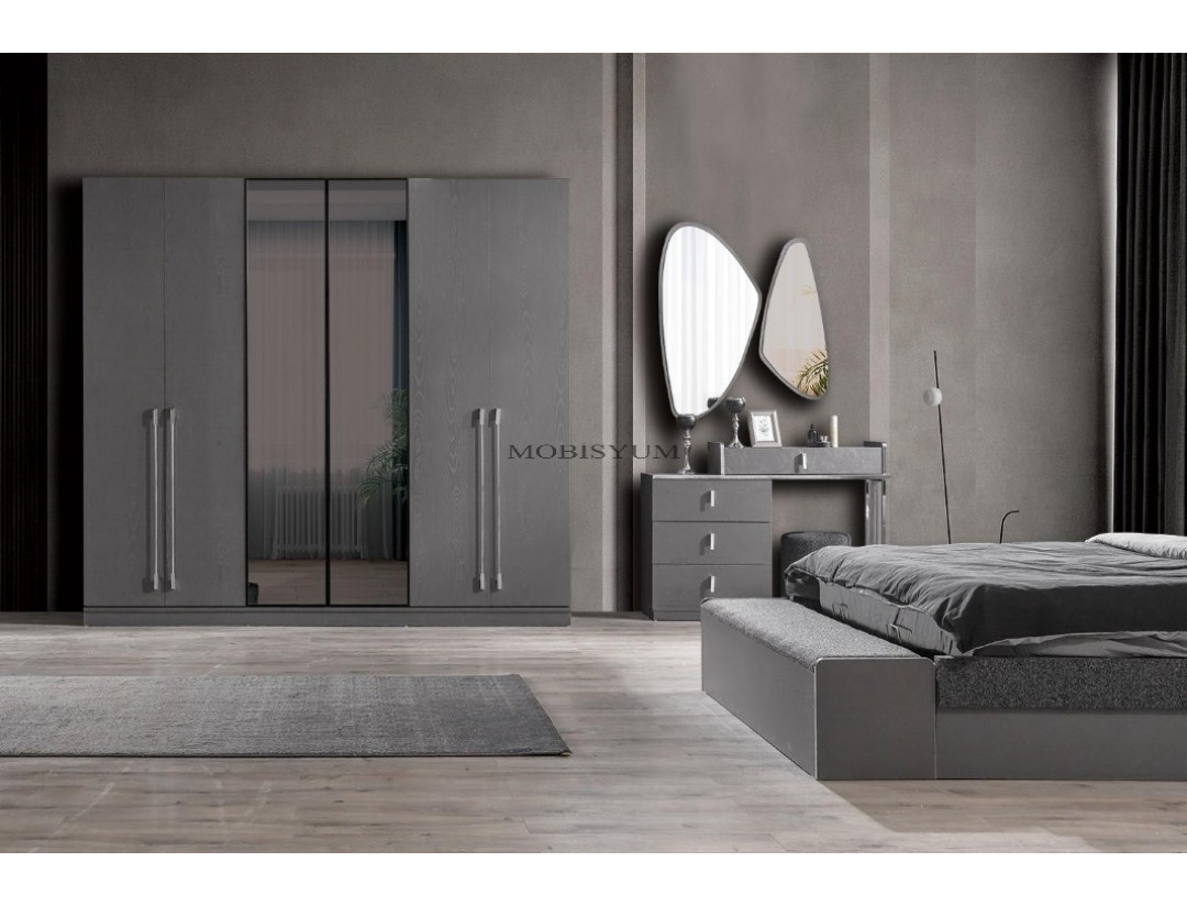 TAKIM İÇERİĞİ | Bir gardırop, bir şifonyer, bir karyola başlık kendinden baza ve iki komodin den oluşmaktadır |