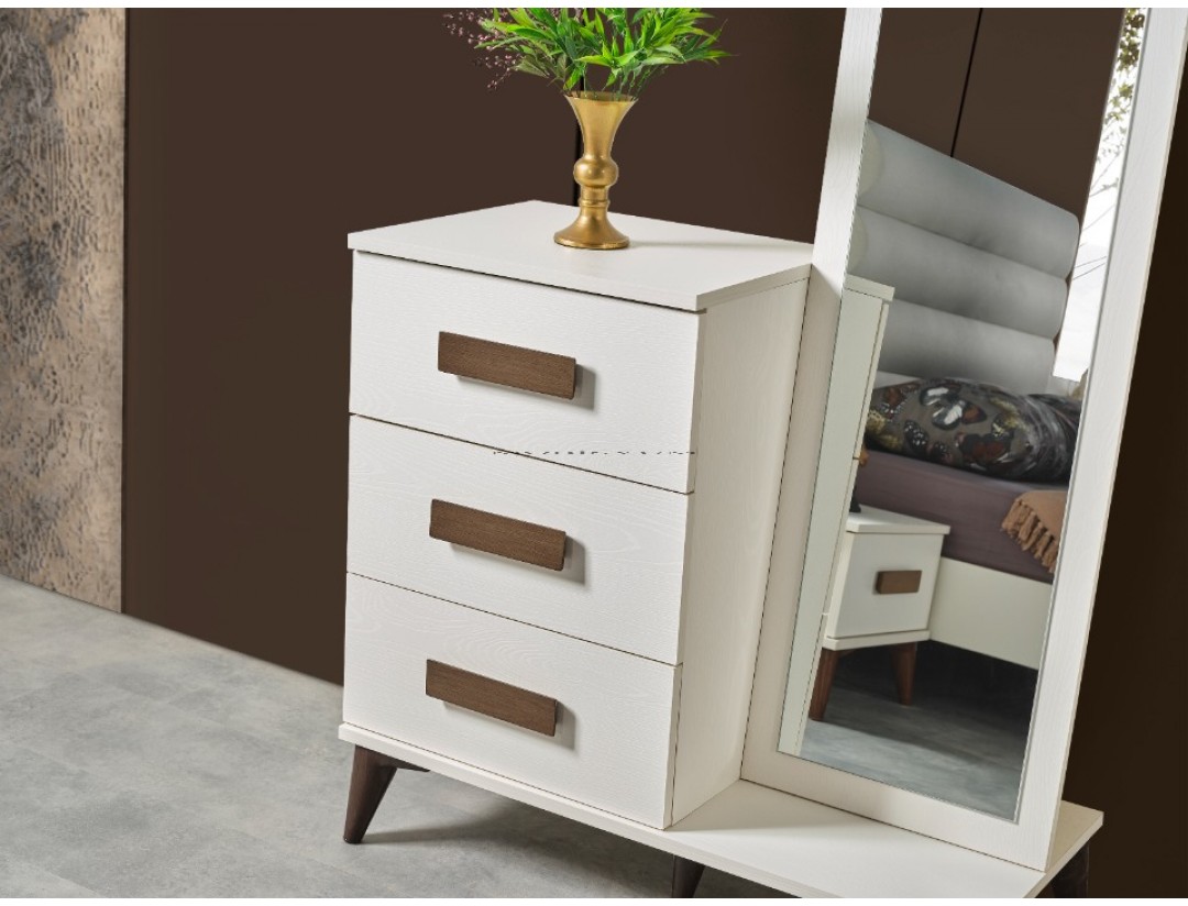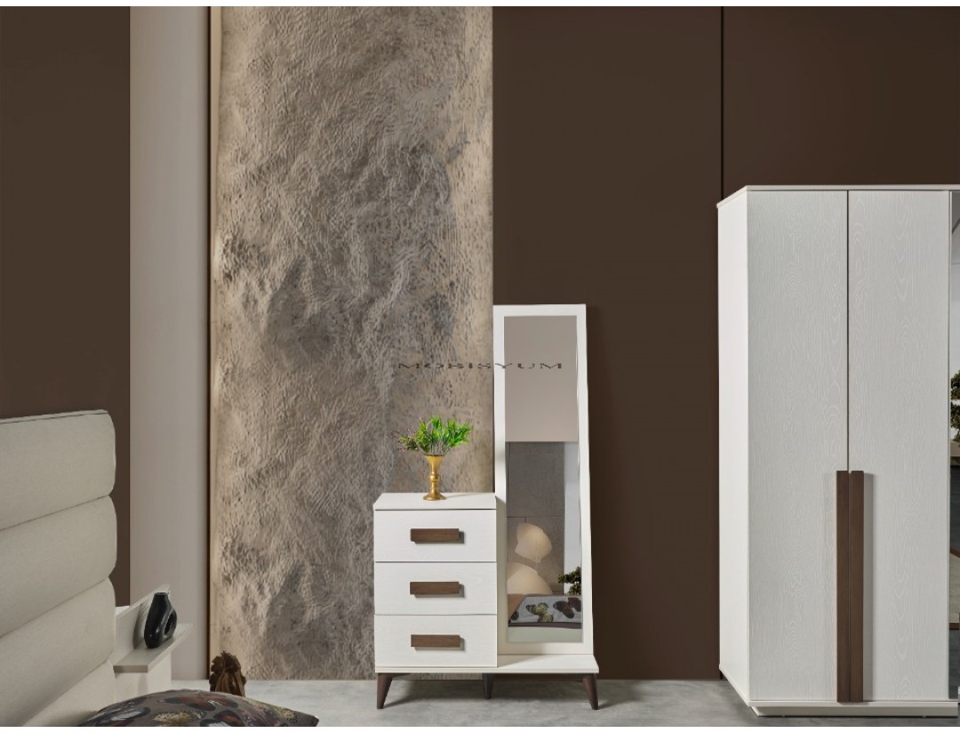 - Takım İçeriği: Bir gardırop, bir şifonyer, bir karyola başlık kendinden baza ve iki komodin den oluşmaktadır
