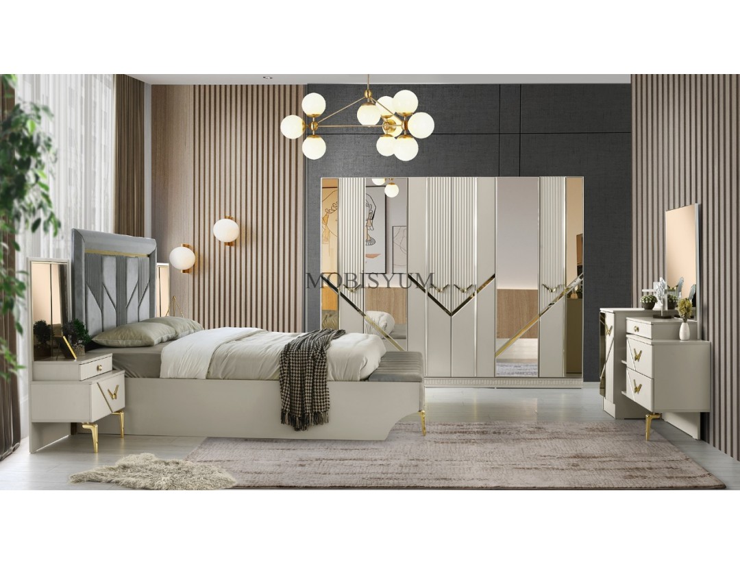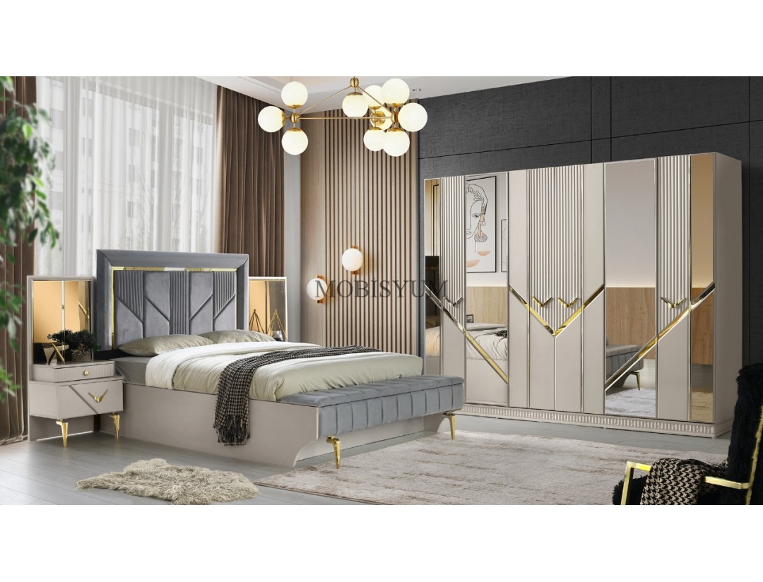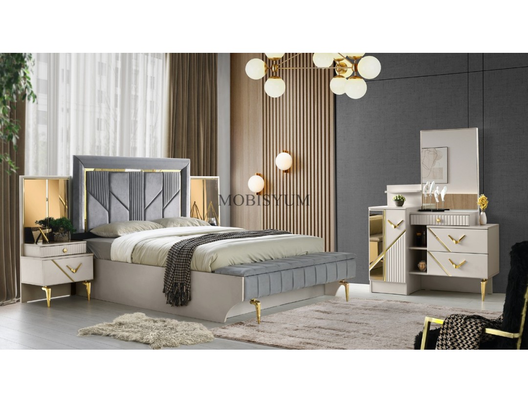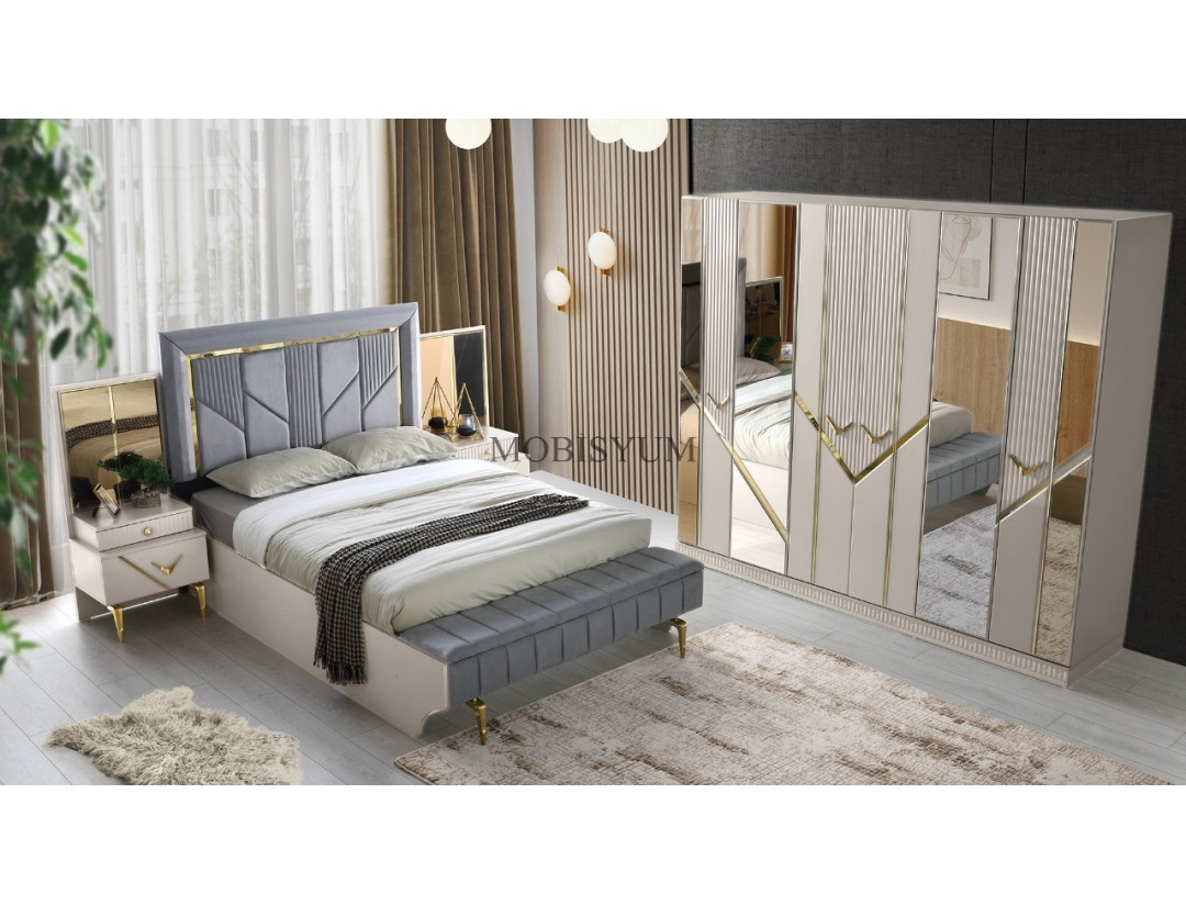 - Takım İçeriği: Bir gardırop, bir şifonyer, bir karyola başlık kendinden baza ve iki komodin den oluşmaktadır