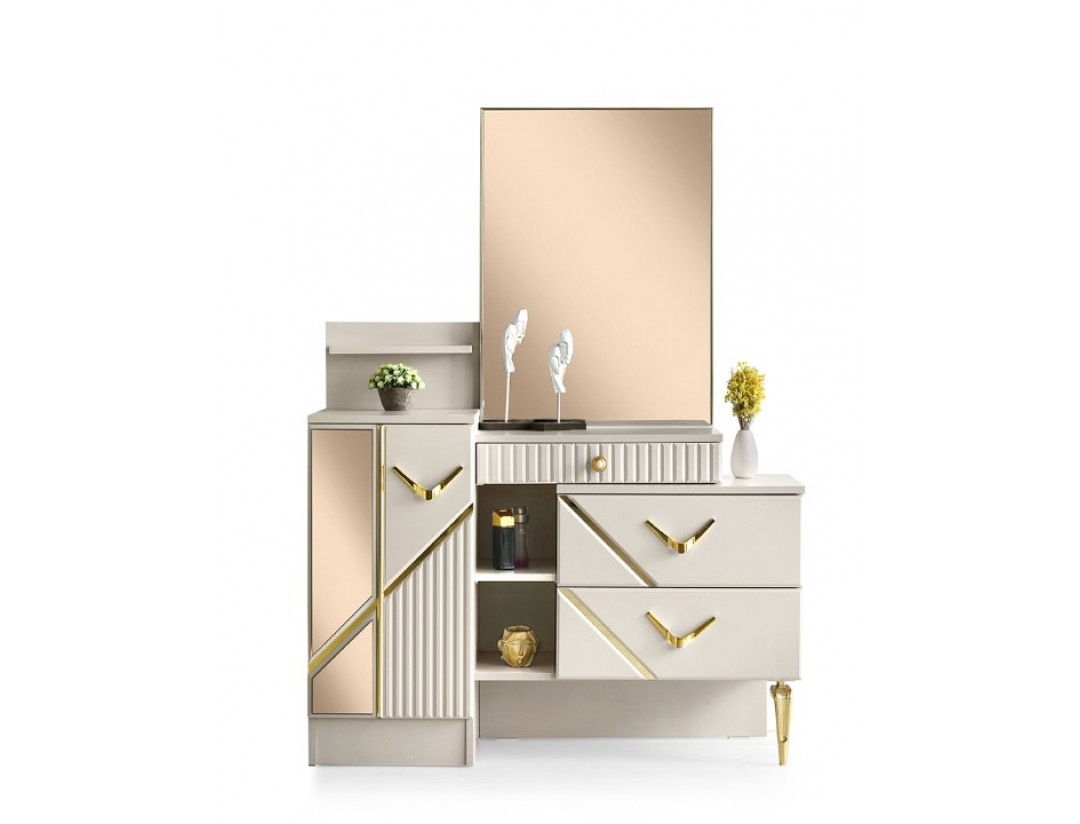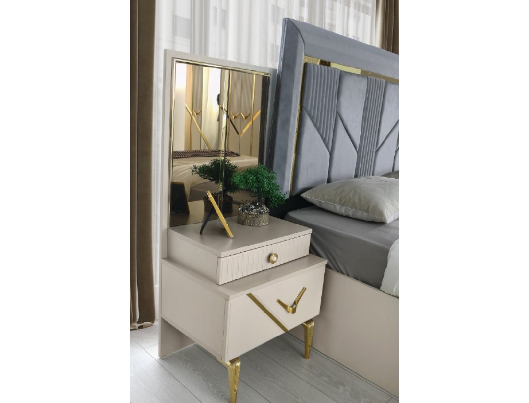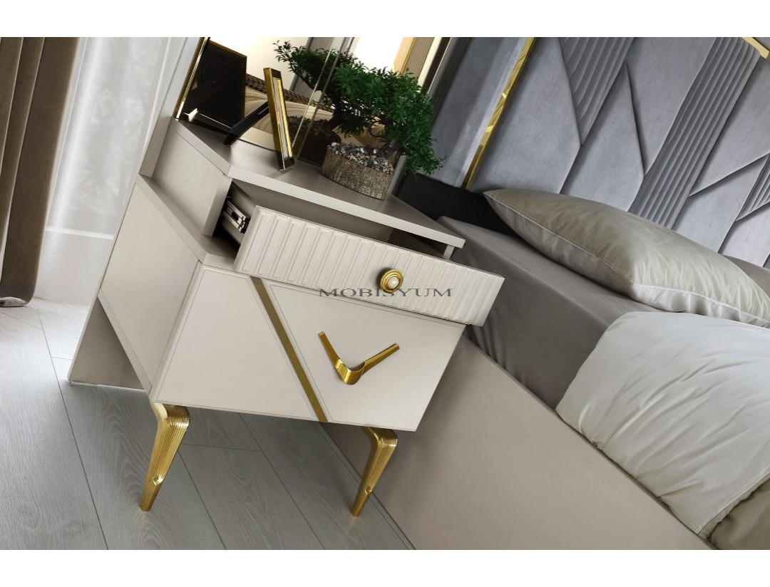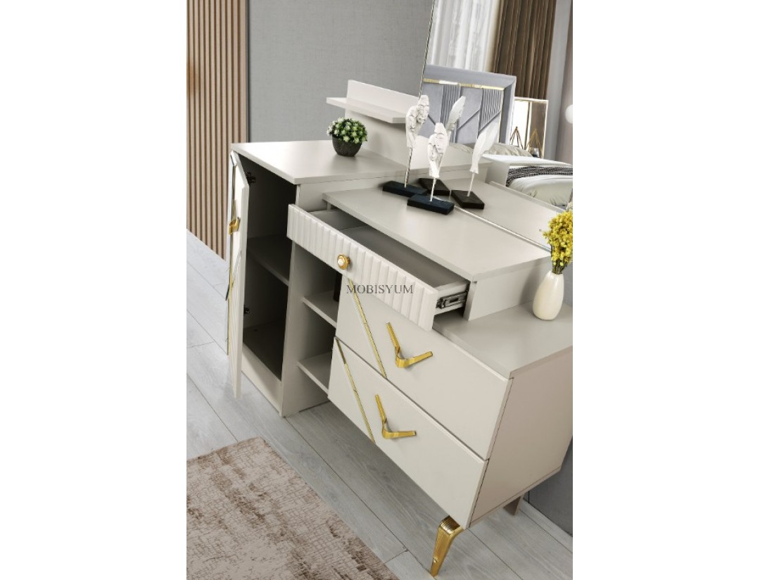 - Takım İçeriği: Bir gardırop, bir şifonyer, bir karyola başlık kendinden baza ve iki komodin den oluşmaktadır