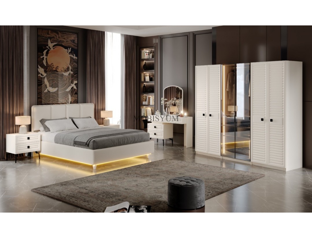 - Takım İçeriği: Bir gardırop, bir şifonyer, bir karyola başlık kendinden baza ve iki komodin den oluşmaktadır