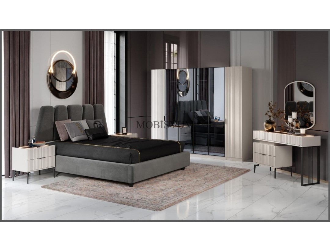 - Takım İçeriği: Bir gardırop, bir şifonyer, bir karyola başlık kendinden baza ve iki komodin den oluşmaktadır