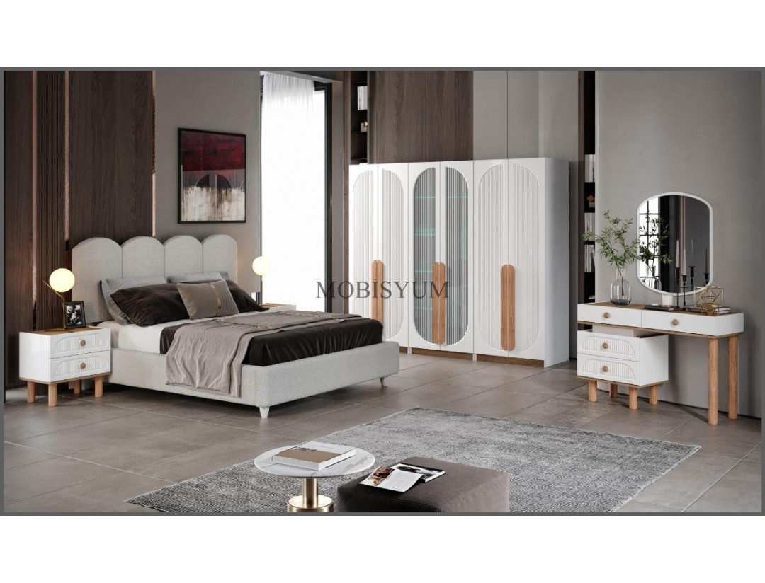 - Takım İçeriği: Bir gardırop, bir şifonyer, bir karyola başlık kendinden baza ve iki komodin den oluşmaktadır