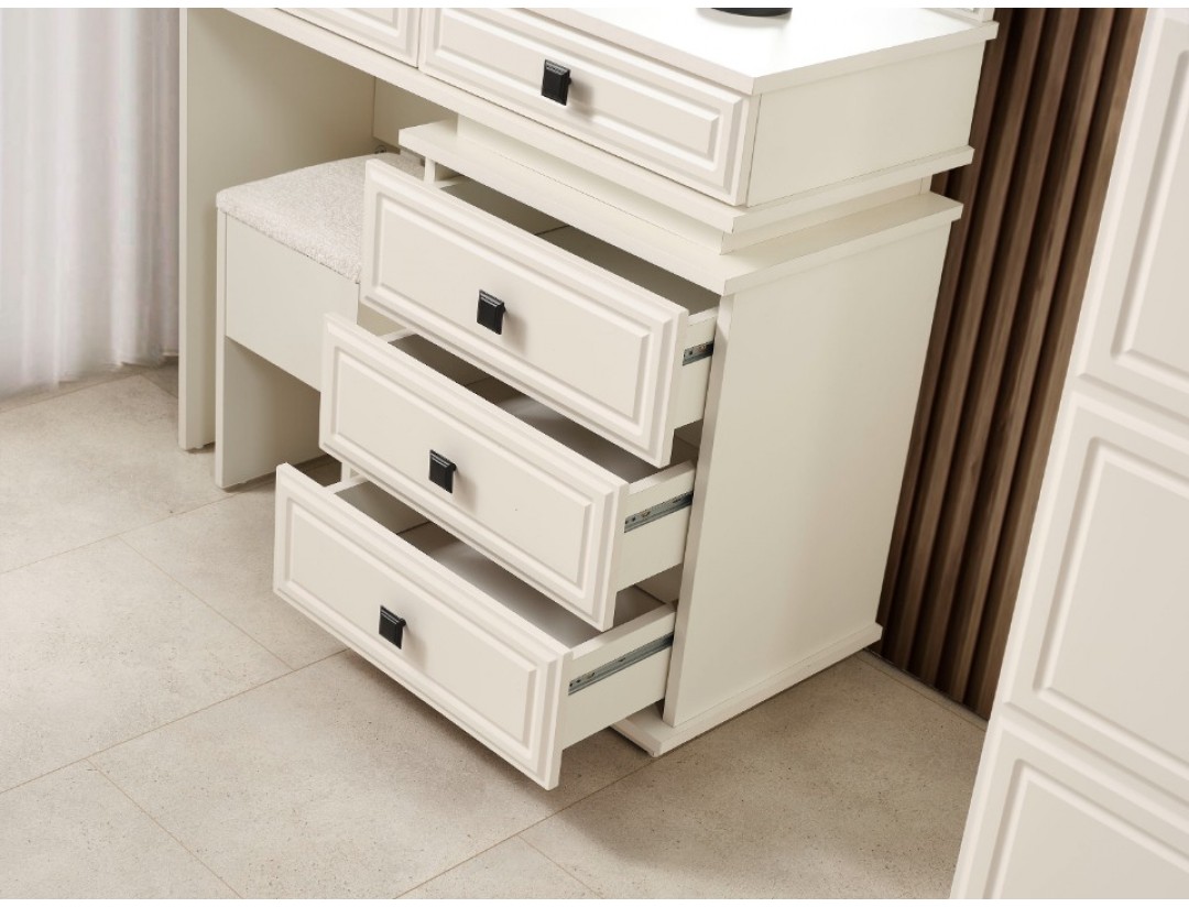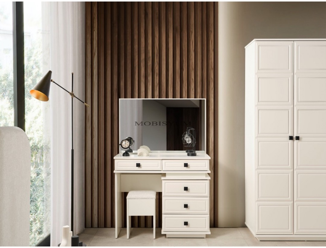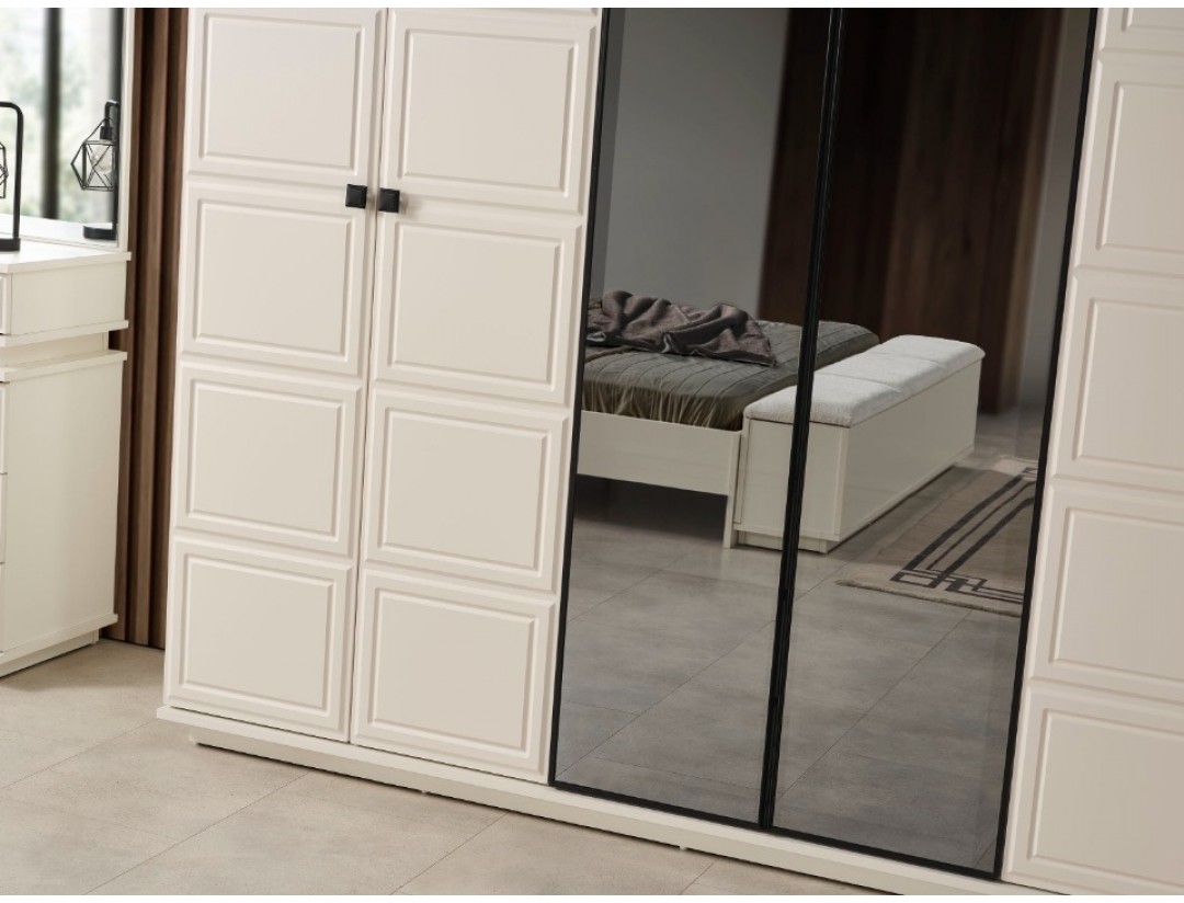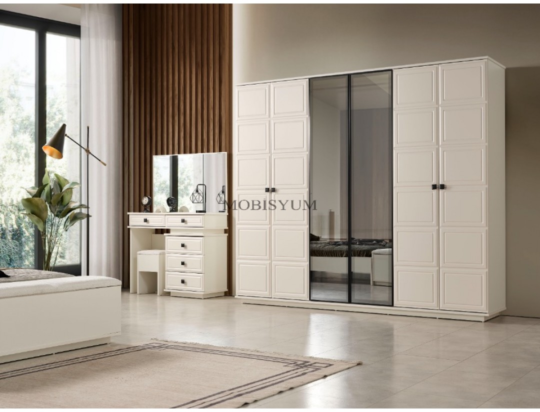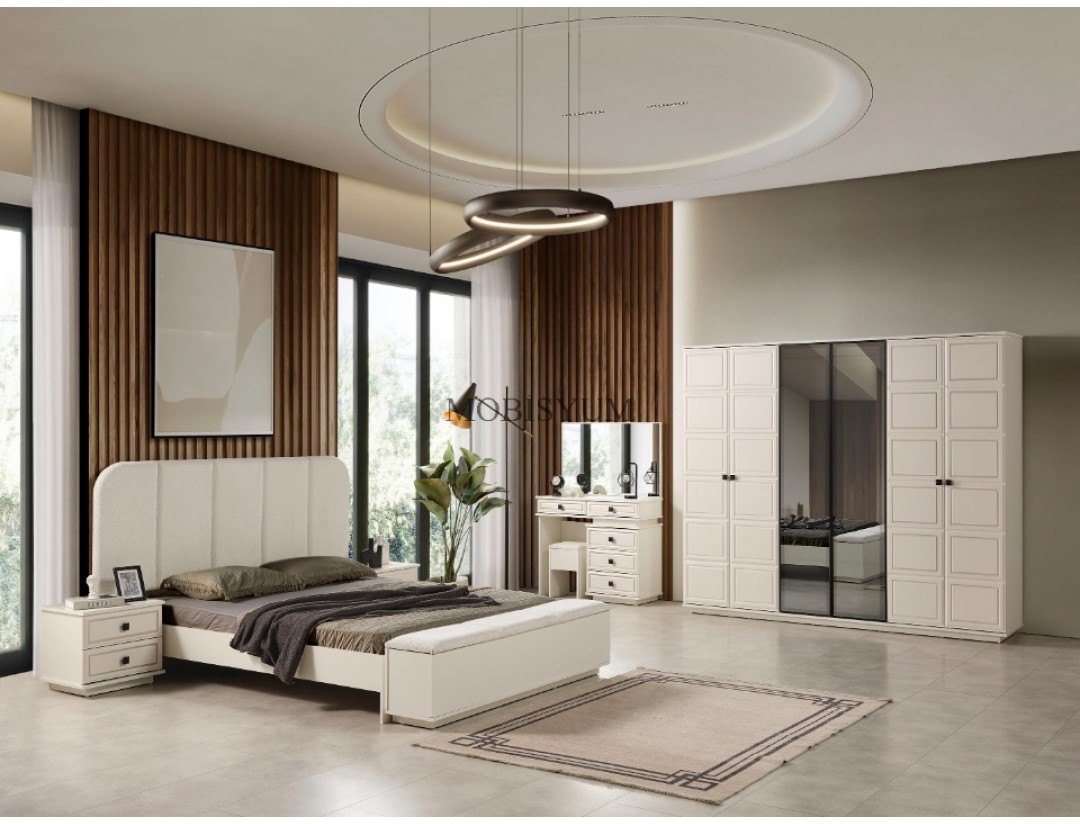 - Takım İçeriği: Bir gardırop, bir şifonyer, bir karyola başlık kendinden baza ve iki komodin den oluşmaktadır
